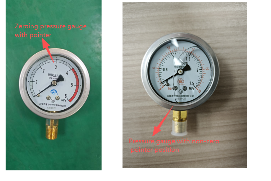 | 9 | การทำงานที่ไม่เหมาะสมระหว่างกระบวนการติดตั้ง | เมื่อติดตั้งและขันเกจวัดความดันให้แน่น ให้ใช้ประแจหมุนตำแหน่งมือจับของเกจ อย่าขยับหัวเกจแรงๆ หากหัวเกจเอียงจะทำให้หน้าปัดเอียงตามไปด้วย ส่งผลให้เกิดปรากฏการณ์ เช่น พอยน์เตอร์ติดหรือไม่กลับเป็นศูนย์ | เกจวัดความดันสามารถถอดประกอบเพื่อตรวจสอบเพื่อดูว่ารูปลักษณ์อยู่ในสภาพดีหรือไม่ | ||||||