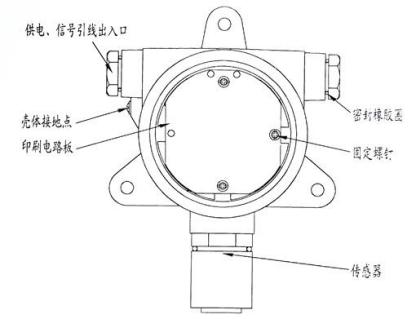 รูปที่ 4 แสดงคำอธิบายของเครื่องส่งสัญญาณการตรวจจับก๊าซฐานขั้วฐาน: